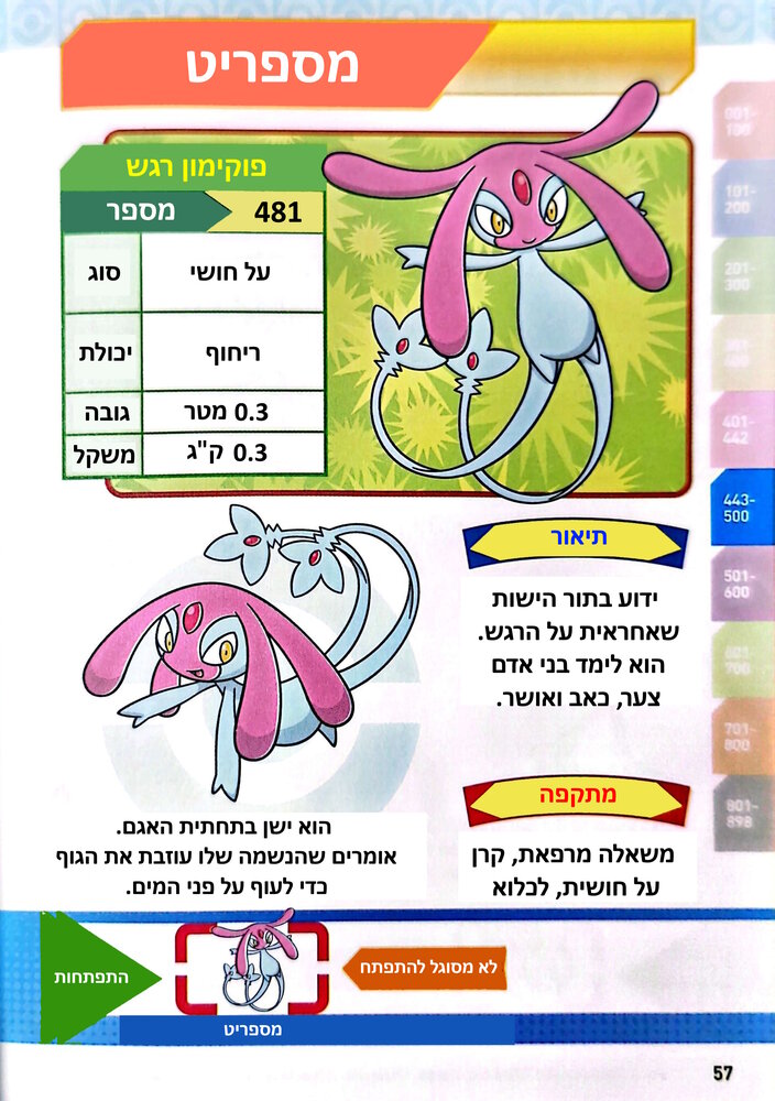פוקידע: פוקימון 0481 – מספריט / Mesprit