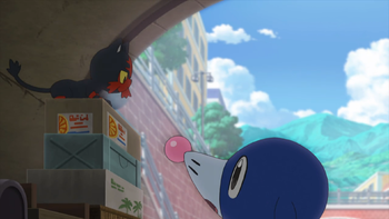 לאנה מראה לחבורה איך היא ופופליו התקדמו ביצירת בלונים. אש מתלהב מזה ומבקש לקחת חלק. פופליו יוצר בלון, בונסוויט מתעטש וכתוצאה מזה פולט אבקה, ראולט סופג את האבקה ומשתגע, וכך יוצא שראולט ופופליו נכלאים בתוך הבלון ומועפים הרחק אל הרי האי. לאחר התפוצצות הבלון, פופליו וראולט נוחתים על צוות רוקט שמעוניינים ללכוד אותם. בהמשך ליטן המשוטט עוזר לשני הפוקימונים להדוף את צוות רוקט והוא מצטרף אליהם עד שהם יצליחו למצוא את המאמנים שלהם. החיפושים אחר ראולט ופופליו נמשכים. בסופו של דבר, צוות רוקט מצליחים להשיג את שלושת הפוקימונים ההתחלתיים, וליטן מצליח לגבור עליהם. לאחר מכן, אש והחבורה מגיעים והפוקימונים והמאמנים מתאחדים.