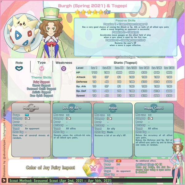 לא ברור לי מי החליט להפוך את ברג לווילי וונקה ולתת לו טוגפי, אבל התוצאה… מעניינת. בתור דמות תמיכה הוא לא רע בכלל – ריפוי + העלאה של דיוק, הגנה וסיכוי למכות קריטיות, זה מאוד שימושי – אבל בכל מה שנוגע לתקיפה, הוא… בלתי צפוי, במלוא מובן המילה. בחיים לא חשבתי שתהיה במשחק דמות עם מטרונום, בטח שלא בתור מהלך התקיפה היחיד שלה, אבל הנה אנחנו כאן. אני בהחלט מצפה לראות דברים מצחיקים איתו.