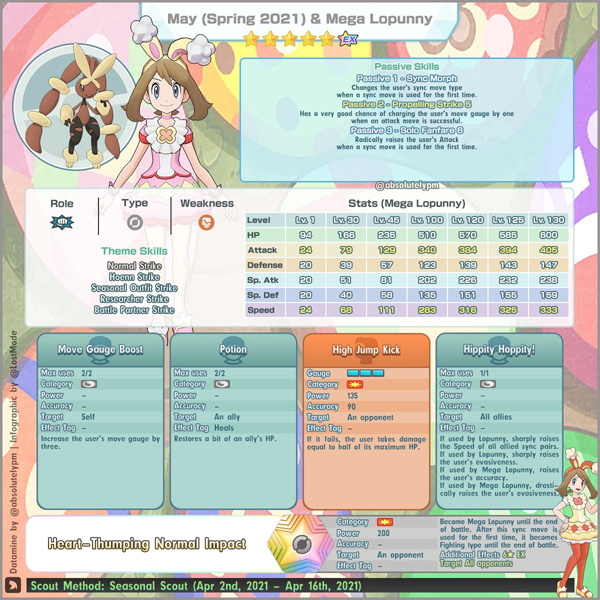 הדמות השנייה שלנו היא לא אחרת מאשר מיי ולנוני – זאת אומרת, לופאני. אבל באמת, רק לי התלבושת הזאת מזכירה את הפוקימון הראשון שאתה רואה כשאתה מתחיל לשחק בפוקימון כחול-לבן? הקונספט של הדמות הזאת הוא משהו שלא ראינו כמותו – היא מתחילה בתור דמות תמיכה מסוג נורמל, אך ברגע שהיא משתמשת במהלך הסינק שלה היא הופכת לדמות תקיפה מסוג לחימה! מעניין לראות איך ינסו לעבוד עם הקונספט הזה בהמשך, כי אני בטוח שהיא פתחה את הדלת להרבה פוקימונים אחרים (לדוגמה טורצ'יק, בהנחה שאשכרה נקבל אפשרות לפתח אותו).