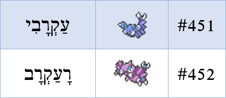 עַקְרָבִי (עקרב קטן) ~> רָעַקְרָב (רעה+עקרב)