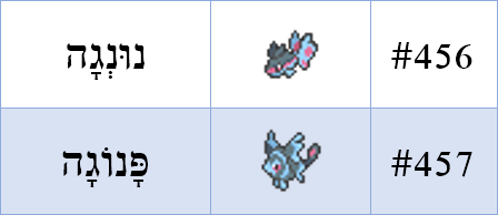נוּנְגָה (נון;דג+נוגה) ~> פָּנוֹגָה (פנס+נוגה)
