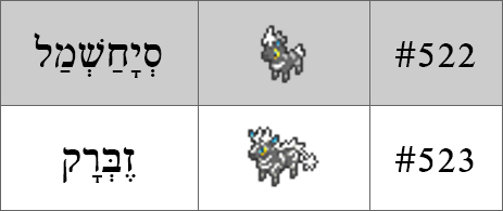ברמה 27 הסיחשמל מתפתחת ל-Zebstrika, הלחם של זברה ו-Strike (מכה), או ביפנית zebraika, הלחם של זברה ו-raika (הבזק של ברק). כמו שכתבתי למעלה, אני לא מצליח לחשוב על שום דרך להלחים את סוס, פרסה או פס עם מילים חשמליות, ומנגד, זברה עובדת נהדר עם ברק, אז באופן חד-פעמי (בפעם המי-יודע-כמה) נשתמש במילה לועזית שהושרשה ונקרא לכיסלצת זברק.