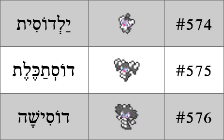 ברמה 41 הדוסתכלת מתחתנת והופכת ל-Gothitelle (ביפנית gochiruzeru), הלחם של גותית ומדמואזל (גברת בצרפתית). נלחים את דוסית ואישה ונקבל דוסישה. והנה, קיבלנו משפחת כיסלצות מאוד ישראלית ומאוד ייחודית, וגם אם לא תרגמנו במדויק, תרגמנו את הכיוון התרבותי, וזה בסדר גמור.