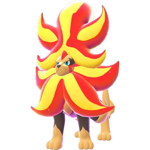 | פוקימון אגדות Z-A | פוקימון זה פולט להבות חמות מ18,000 מעלות פרנהייט. הוא מנענע את הרעמה הגדולה והבוערת שלו כשהוא מגן על בני בריתו. |