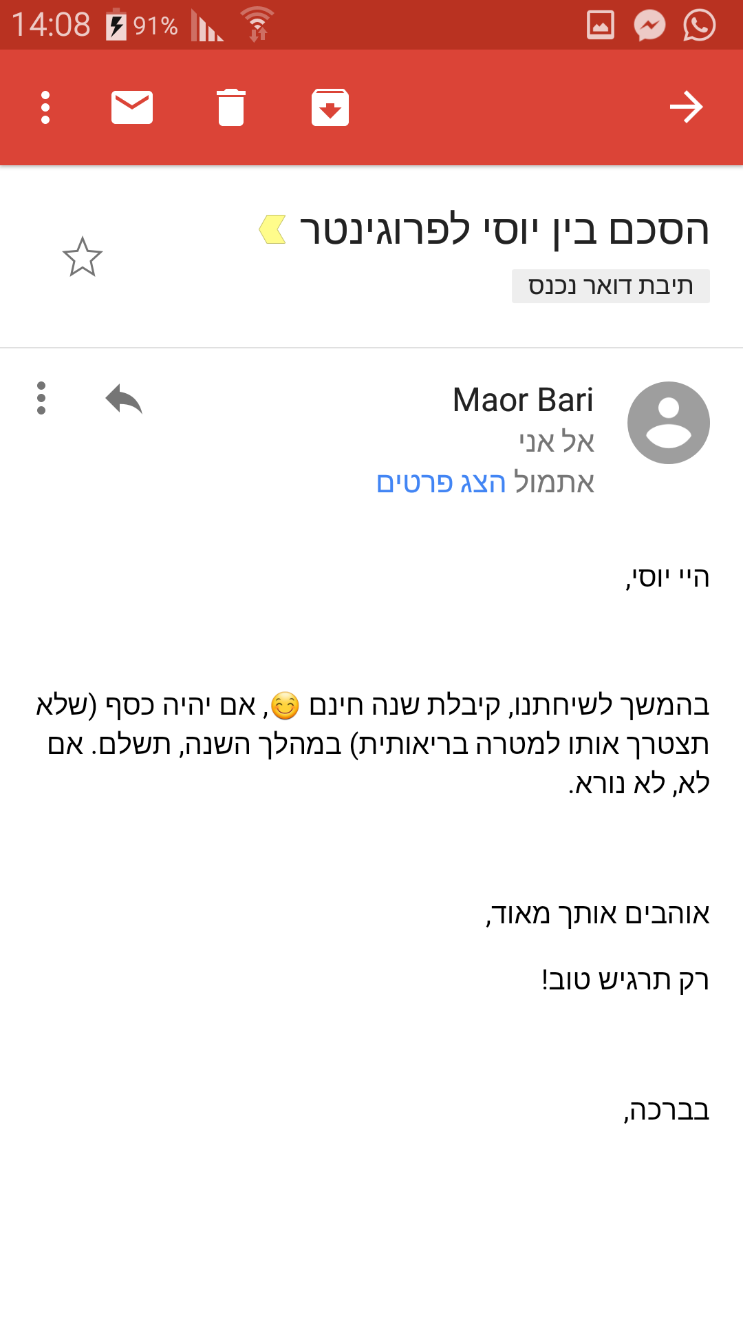 6. יוסי תמיד אנחנו לצידך, אחרי כל ההשקעה שלך אין מצב שנוותר עליך בכזאת קלות, ואכן לפעמים יש אנשים וחברות שאכן יכולים לעשות לך הנחה ואפילו מתנה במצבים קשים כמו שהיה.